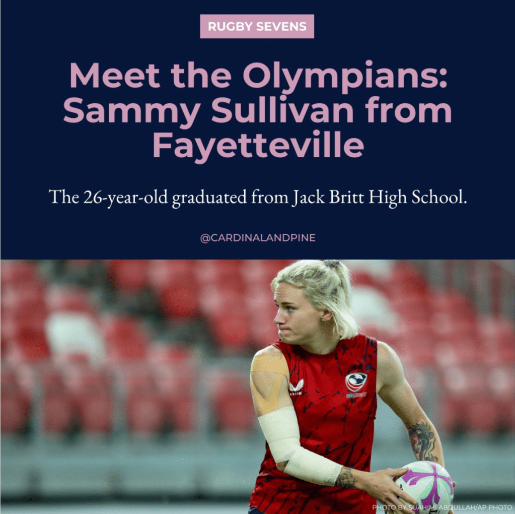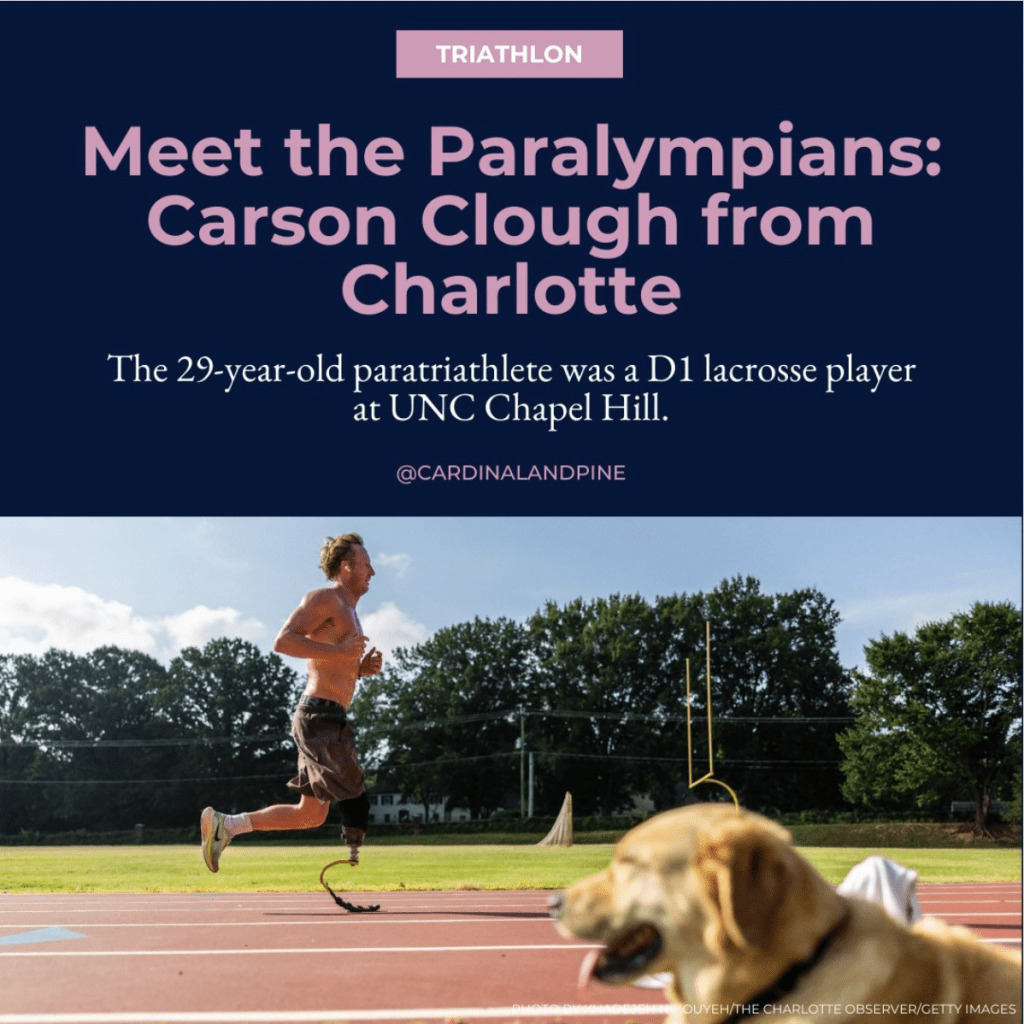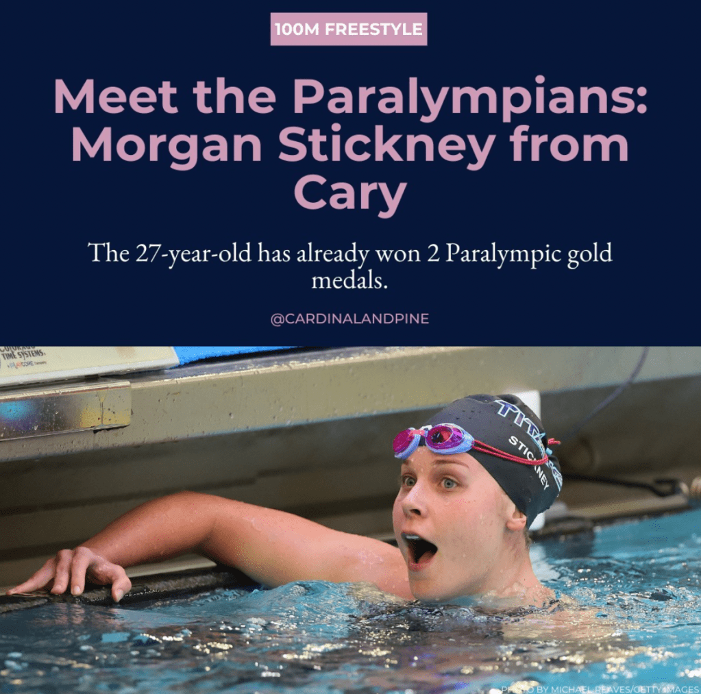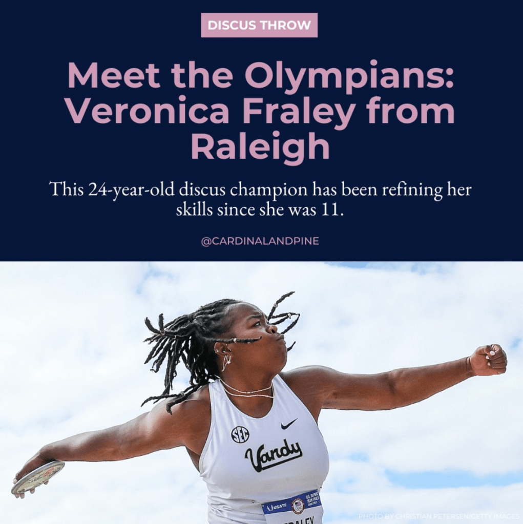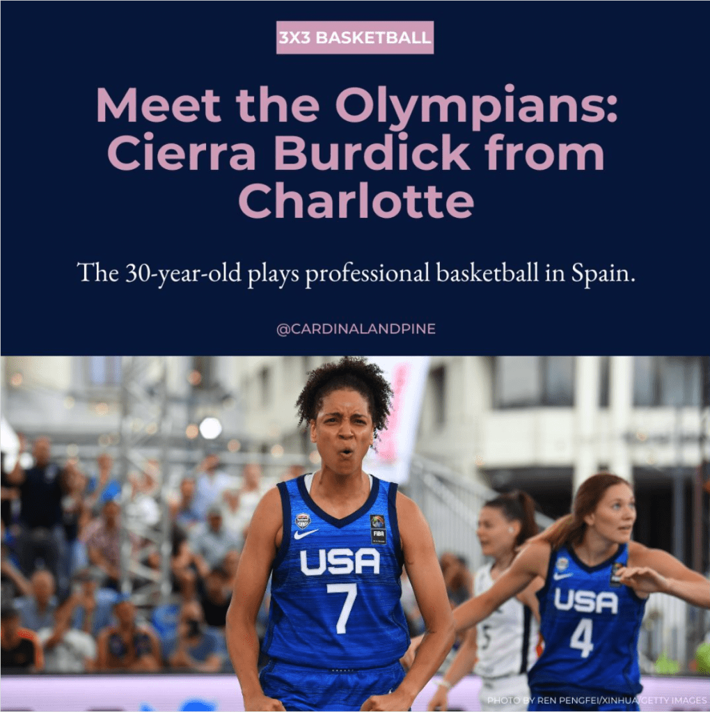 As the Editorial Intern at Cardinal & Pine during Summer 2024, I spearheaded a social media series across Instagram, Facebook, and X that highlighted local North Carolina athletes competing at the Paris 2024 Olympics and Paralympics. I sourced and credited images from Getty and Reuters, created graphics in Canva, and copywrote the headlines, subheads, and captions.